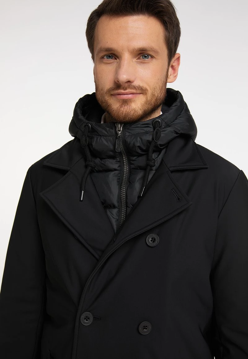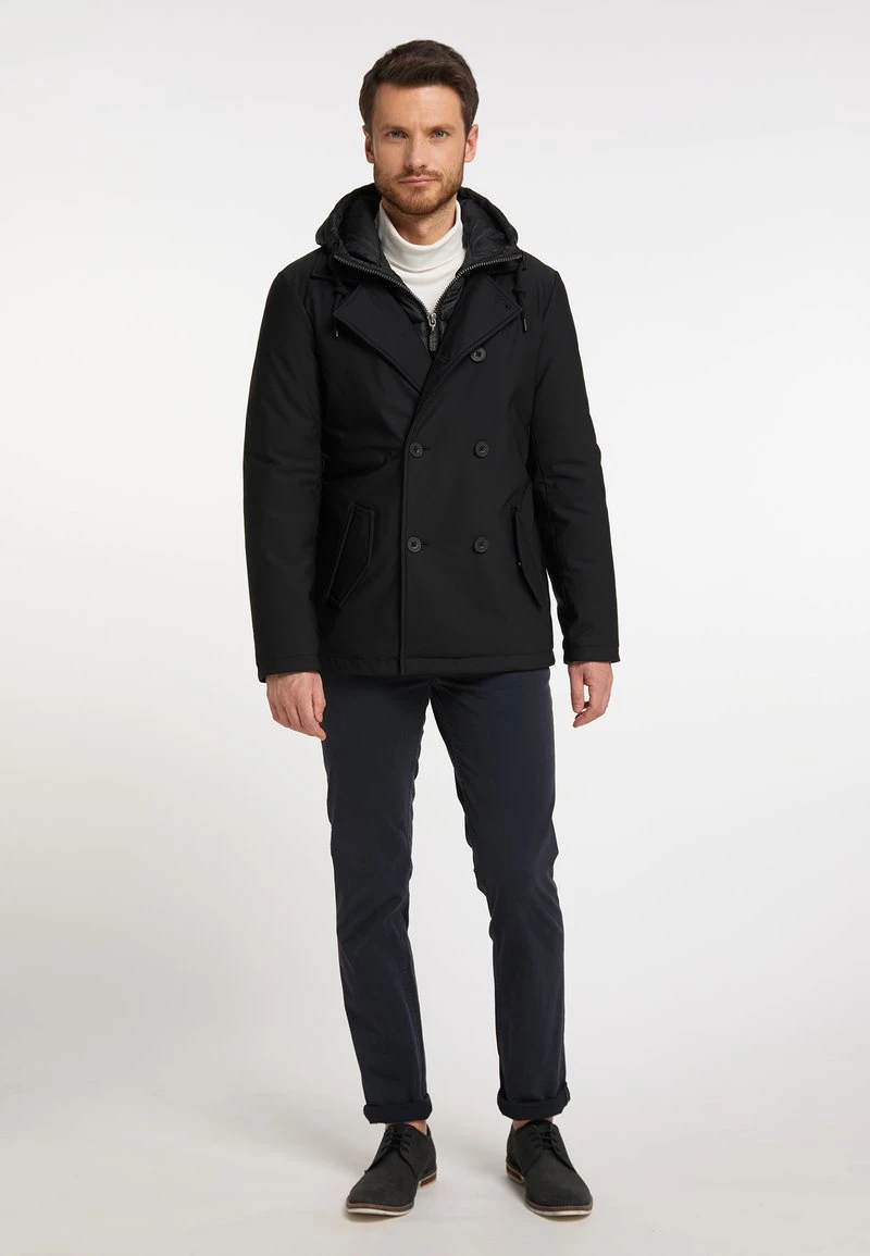 - Detalles: Tira de botones, Cierre cubierto, bolsillos verticales